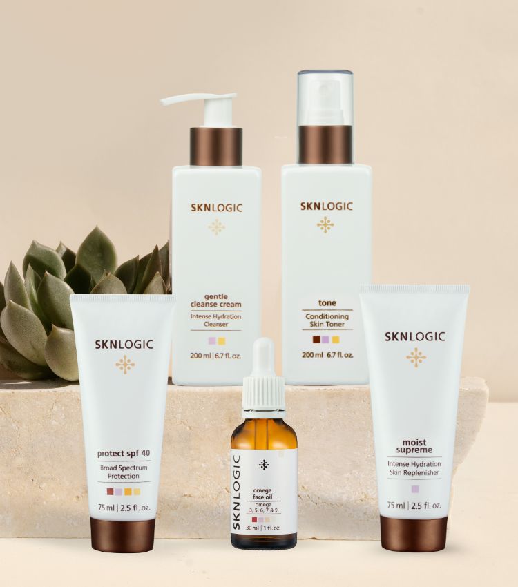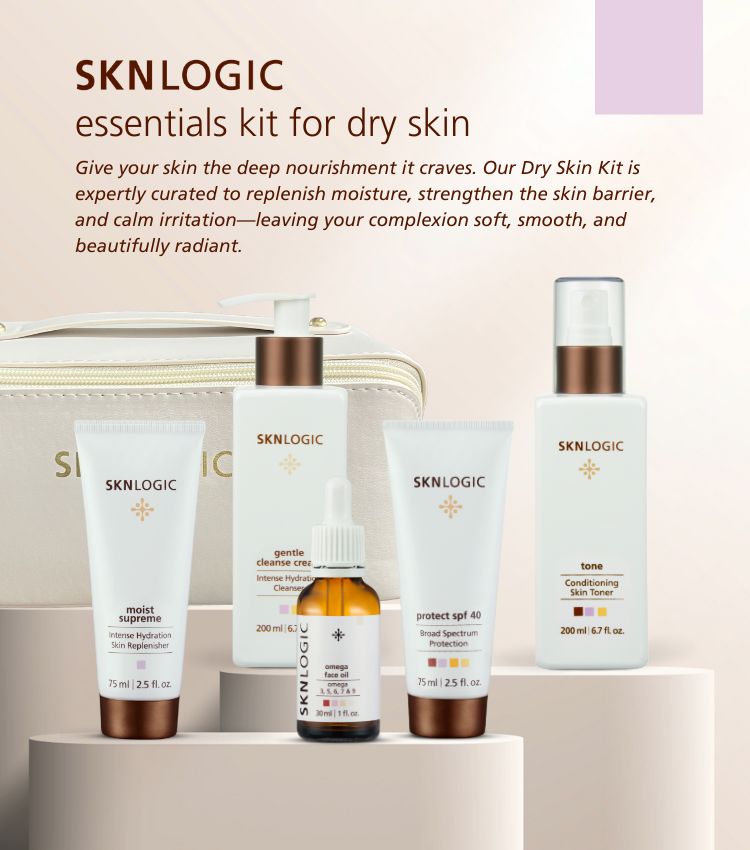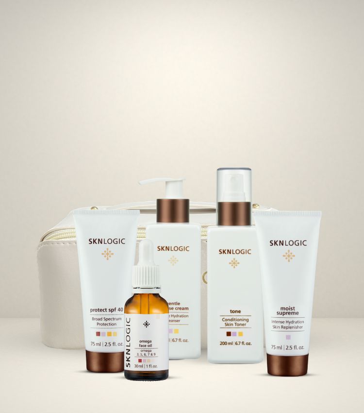 Kit Contains: Gentle Cleanse Cream, Tone, Omega Face Oil, Moist SupremeProtect SPF 40 and Cosmetic Bag The Sknlogic Essentials Skin care kit contains a full regimen of what your skin needs the most. After you have been on the Skin care essentials range for 4 weeks you can add the...